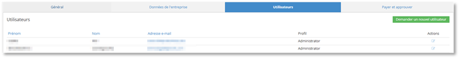 Le processus d’approbation des paiements peut être activé et configuré par les utilisateurs qui ont le profil d’accès "Administrateur" dans le portail.