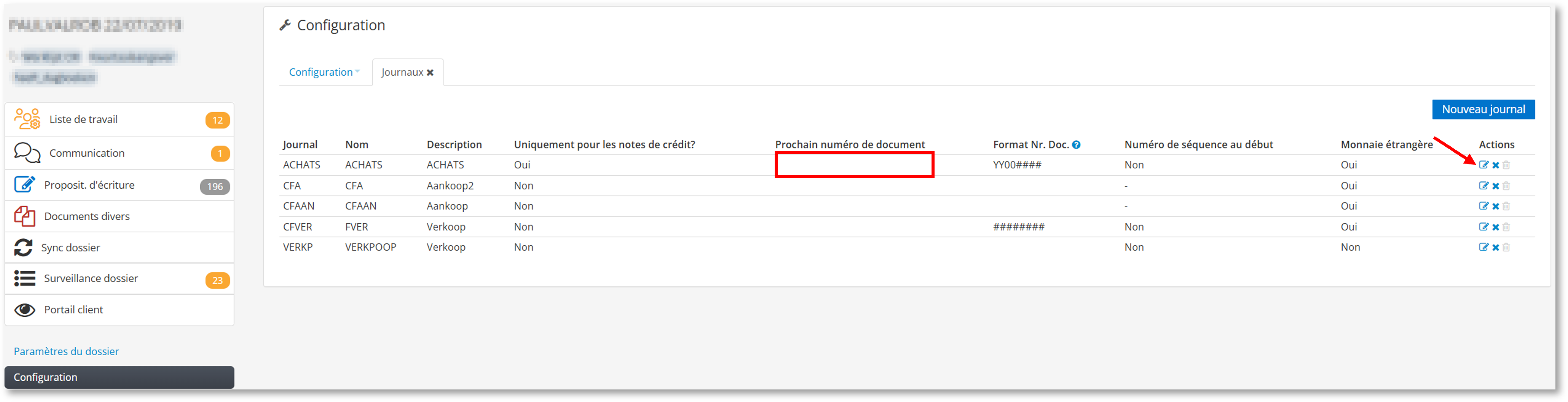 C'est pourquoi il faut introduire le "Prochain numéro de document" avant tout encodage dans notre plateforme. Ce numéro suit les encodages existants dans le logiciel de comptabilité.