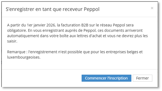 Vous serez invité dans le portail client à vous enregistrer sur Peppol si vous