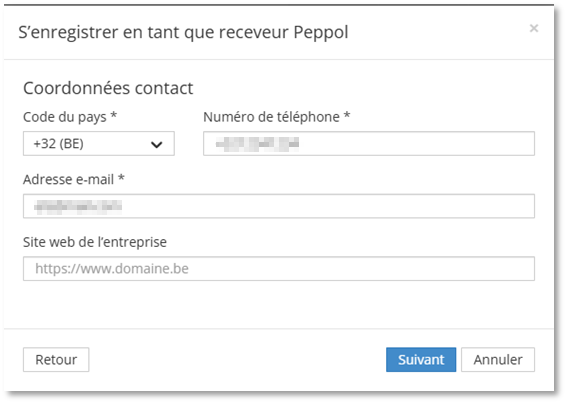 Cliquez ensuite sur "S’enregistrer comme receveur Peppol" et suivez les étapes décrites ci-dessus.