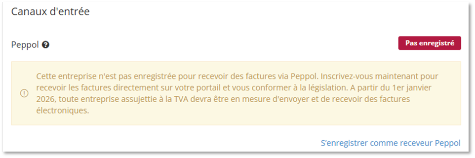 - n'êtes pas encore enregistré comme destinataire sur Peppol via un autre canal