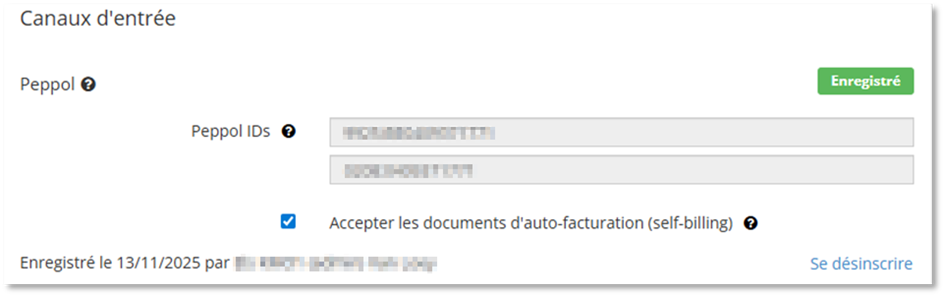 - Si vous vous enregistrez via Peppol Direct ou si vous êtes déjà enregistré, vous recevrez automatiquement les factures d’auto-facturation.