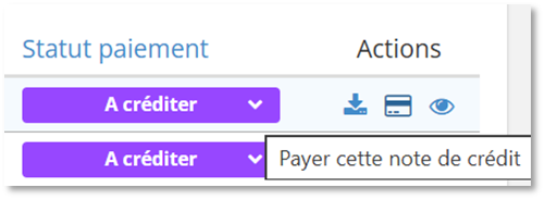 • cliquez sur l’icône de paiement ou de créances à côté des notes de crédit dans les boîtes aux lettres, la liste des factures et créances, l’archive, etc.