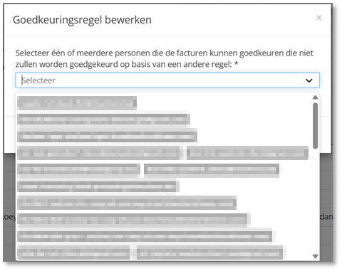 Opgelet, er kunnen meerdere goedkeurders geselecteerd worden voor de betreffende goedkeuringsregel (uit een lijst van actieve gebruikers), maar de goedkeuring aan een factuur kan door één of alle goedkeurder(s) gegeven worden, afhankelijk van het type goedkeuring.
