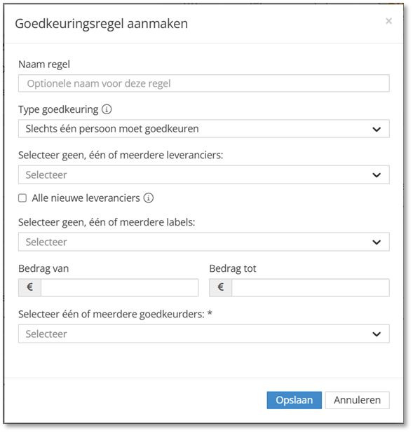 - Bedrag van/tot: bedrag vanaf/tot wanneer deze goedkeurder een factuur moet/mag goedkeuren