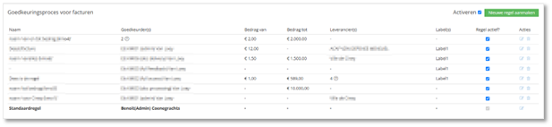 In de tabel met goedkeuringsregels, vind je volgende gegevens terug:
