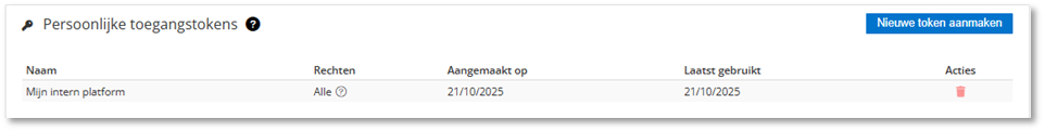 Als je klanten een programma willen verbinden met ons platform, kan je tokens voor hen aanmaken en doorgeven, maar ze kunnen ook zelf tokens genereren in het klantenportaal via “Mijn profiel”.