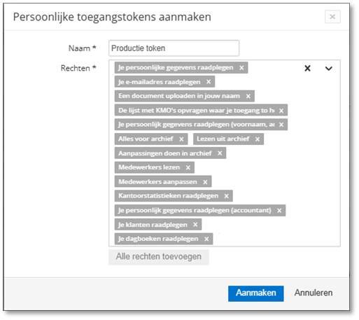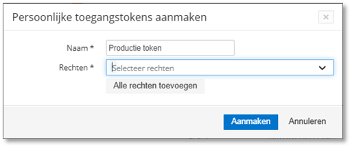 - Selecteer de rechten die je via deze token wil toevoegen via het dropdown menu
