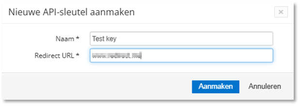3. Geef een naam op voor de sleutel en een “Redirect URL”